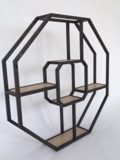 Ons design wandmeubel in honingraat heeft een hoogte van 140 cm en een breedte van 118 cm. De diepte is 30 cm. Het materiaal is geolied staal in combinatie met houten leggers. Een behandeling met olie geeft een beschermlaag met behoud van het stoere karakter aan het staal. Dit wandmeubel is ook leverbaar met pootjes, voor een nog opvallender design. Het idee achter dit design wandmeubel is om een echte eyecatcher te creëren in uw interieur, om uw mooiste objecten tentoon te stellen. U kunt het wandmeubel tegen een wand plaatsen of als roomdivider gebruiken. Andere maatvoeringen of afwerkingen, zoals een andere kleur of houtsoort, zijn mogelijk. Neem dan contact met ons op, zodat we het concept naar uw wensen kunnen uitbreiden of vormgeven.