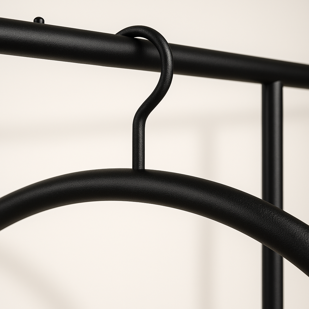 Metaalstore heeft een ruim assortiment aan garderobestangen met bijpassende accessoires, waaronder de kledinghanger in zwart RAL 9005 fijnstructuur. (Metaalstore – garderobe oplossingen) Met de bijpassende kledinghangers maakt u uw garderobe tot een blikvanger in uw hal. Wij verkopen kledinghangers in massief RVS-INOX en in RAL kleur, zoals in RAL 9005 zwart, in RAL 9005 zwart fijnstructuur, in RAL 1036 goud, in RAL 9010 wit en in brons.