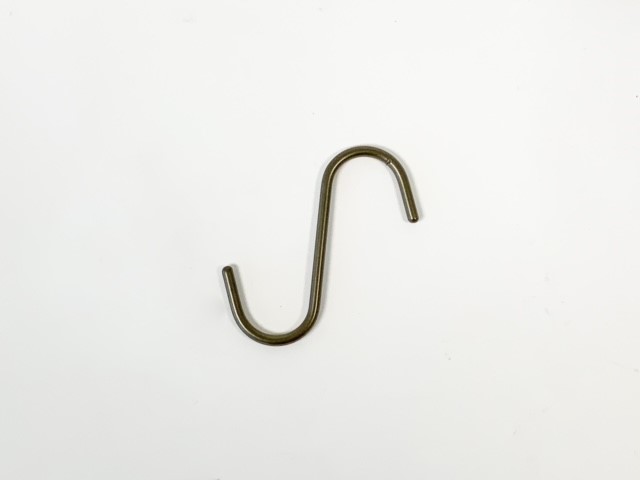 De S-Haak is er in twee modellen. In een groot model en in een klein model. De lengte het grote model is 115 mm | 11,5 cm. De binnenmaat van de S-haak is 40 mm. De S-haak is gebogen uit hoogwaardig massief staal draad met een diameter van Ø6 mm. De haakuitieinden zijn bol afgewerkt en de randen zijn geslepen. Daarna is de S-Haak voorzien van een professionele poedercoating in brons. U koopt een hele sterke en mooi afgewerkte S-Haak.