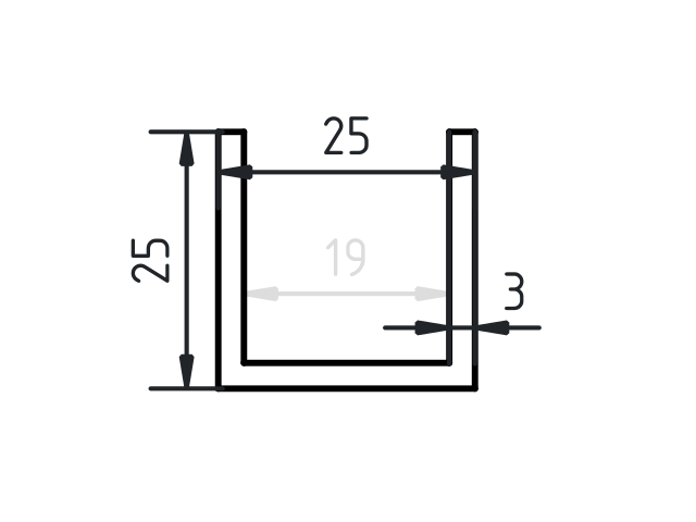 U-profiel aluminium 25x25x25x3