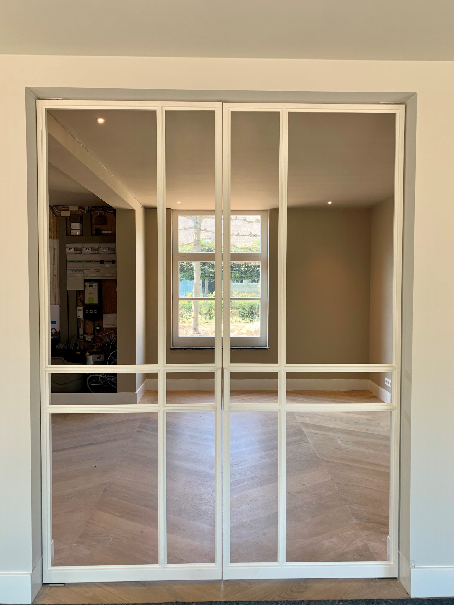 Witte stalen deuren voegen een tijdloze en elegante uitstraling toe aan elke ruimte. De heldere, frisse kleur geeft een gevoel van ruimte en lichtheid, terwijl het robuuste staal voor een karaktervol accent zorgt.